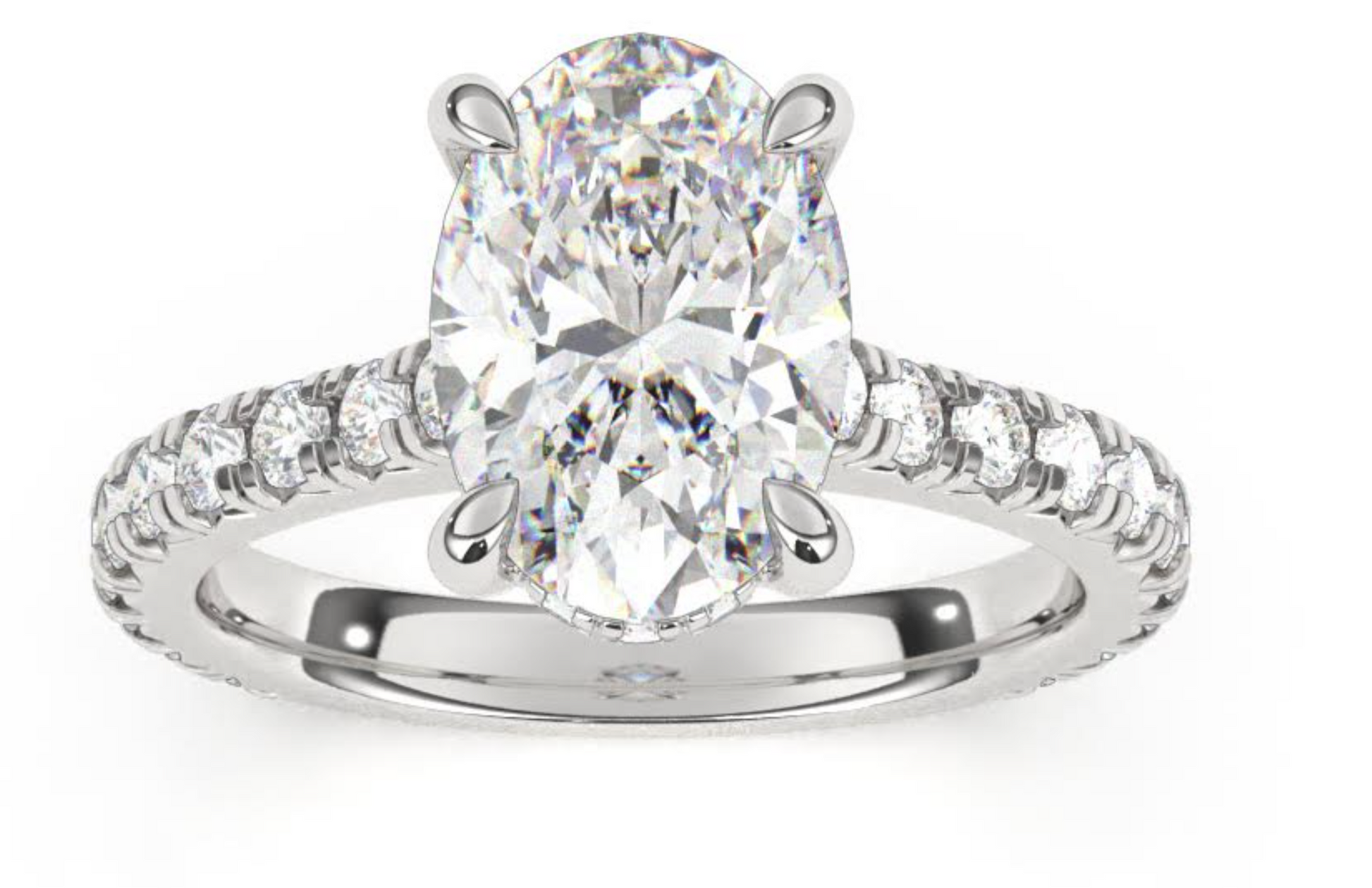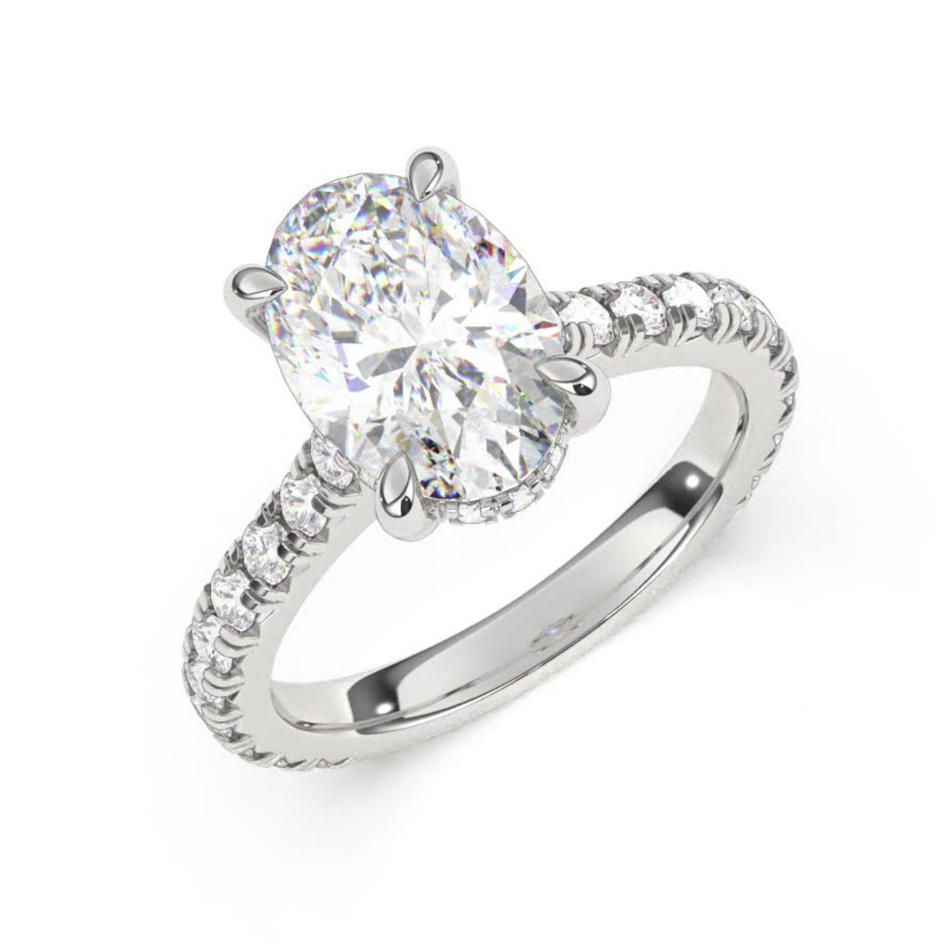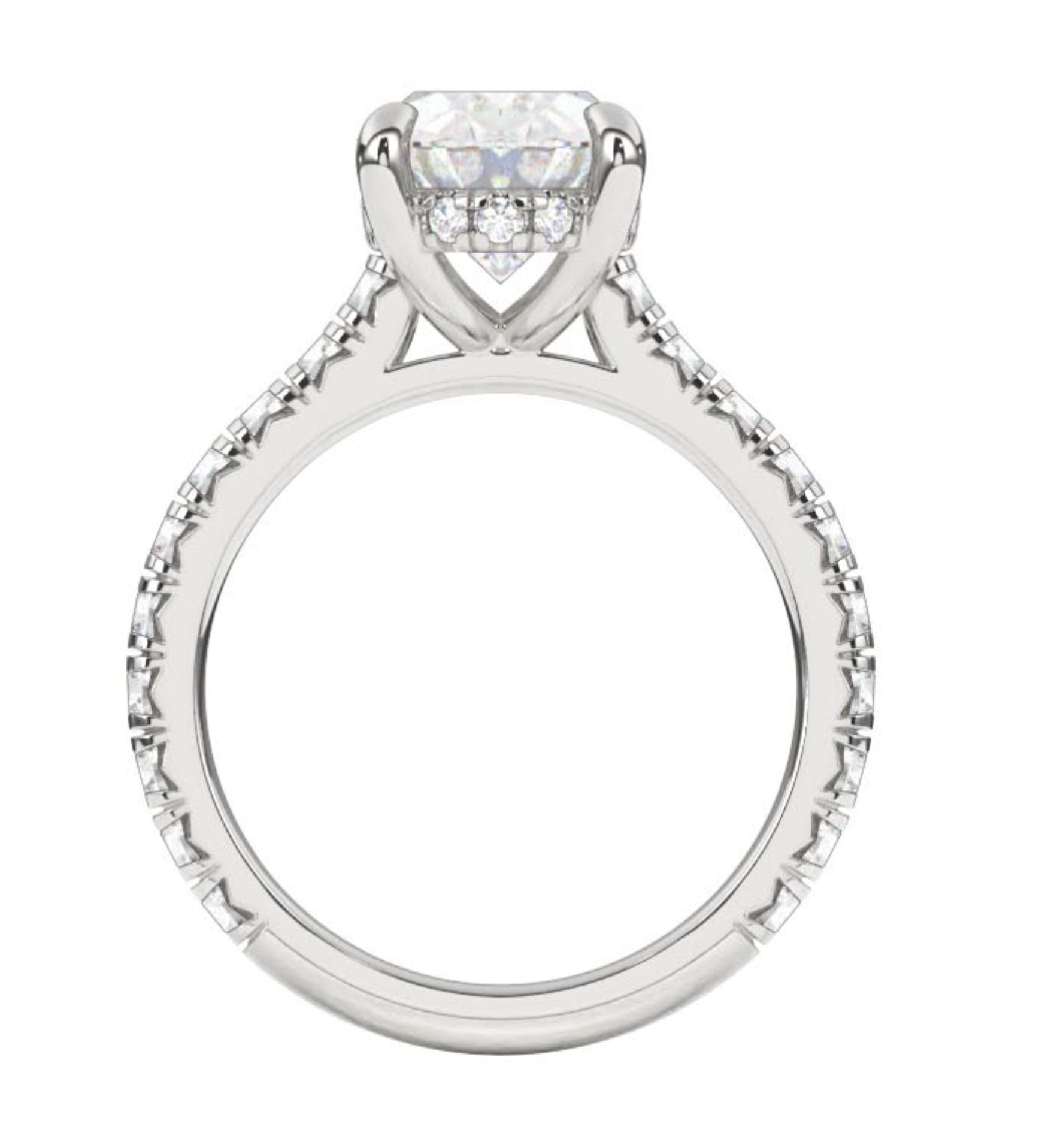 Anillo estilo catederal con halo de diamantes escondido! y aro con diamantes en engaste pavé frances hasta 3/4 del anillo