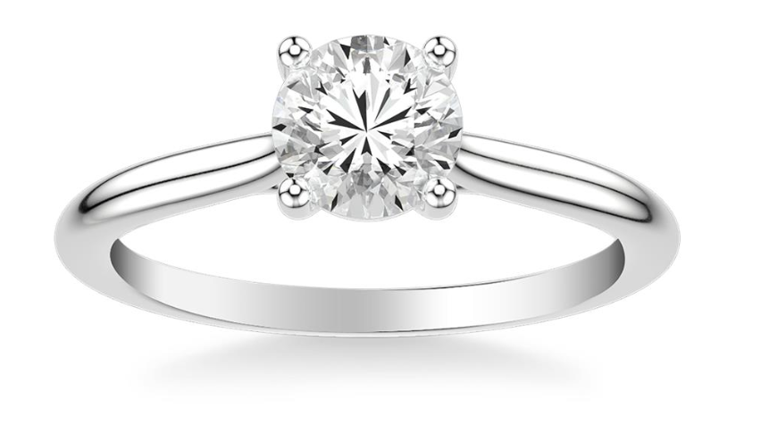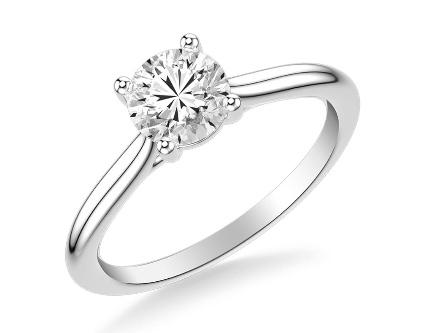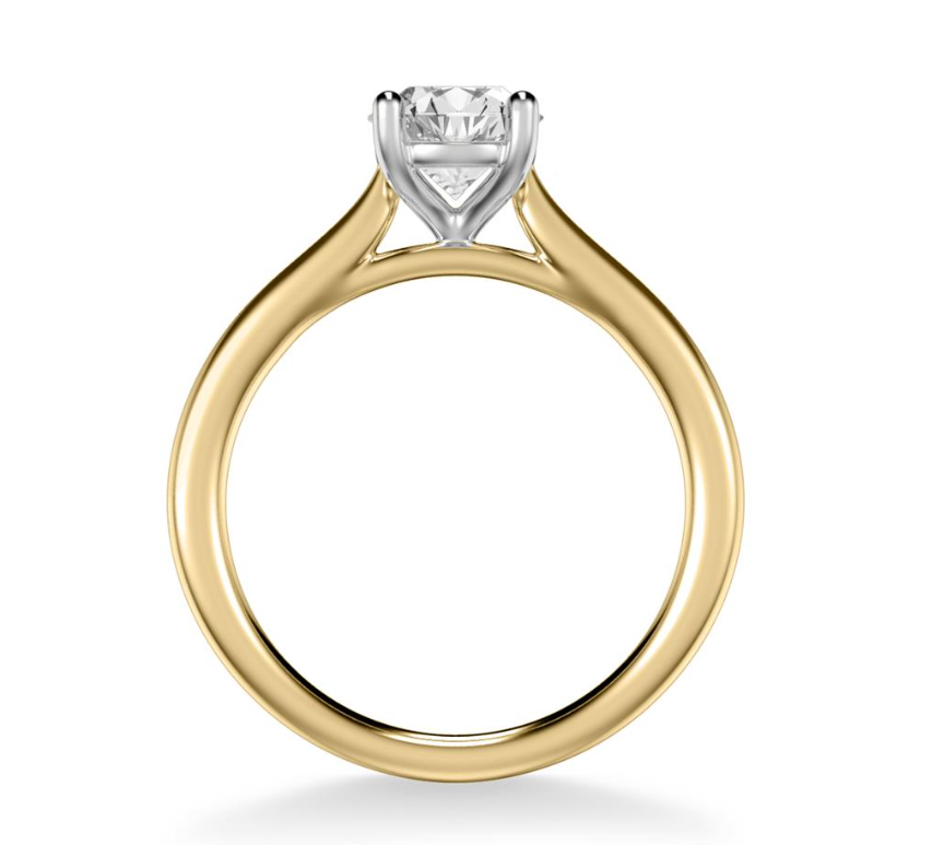 Anillo clasico solitario estilo catedral, atemporal y sofisticado, con una aro de 2.2 mm.